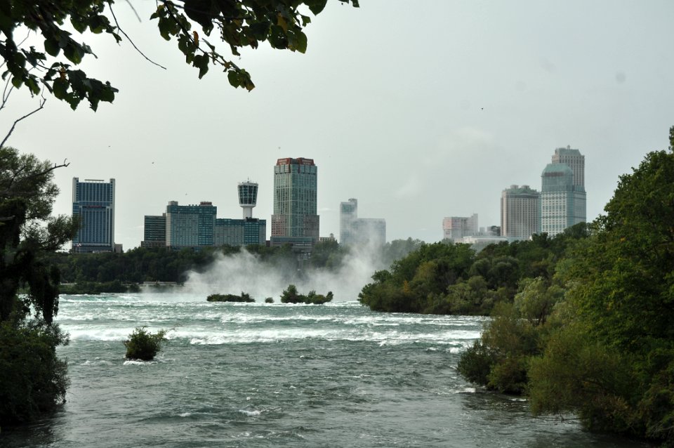19 Looking along the Niagara River to the Canadian falls. It is one steep jump down, the fog gives it away.